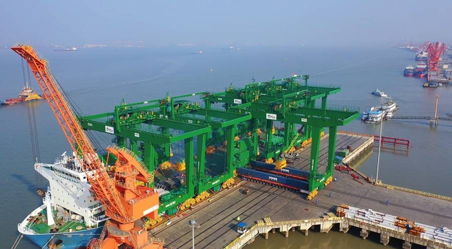 2月12日,装载风电设备、工程车辆、钢材及特种罐箱等大宗货物的中国籍“长安城”轮从张家港启航,驶往拉美地区,这也是今年从张家港口岸首次出口的大型风电设备;2月8日,搭载6台总重2883.3吨、体积超27.8万方的轨道吊及配件的甲板货船,启程运往新加坡,这是张家港口岸今年出口至“一带一路”沿线国家的首批国产港口机械装备。